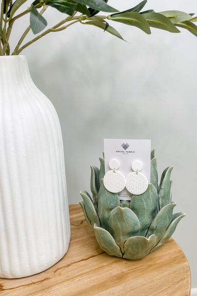 THE DETAILS Social Fabric Clothing New to Social Fabric Clothing, these stunning crisp white danlge earrings are the perfect accessory to any w...